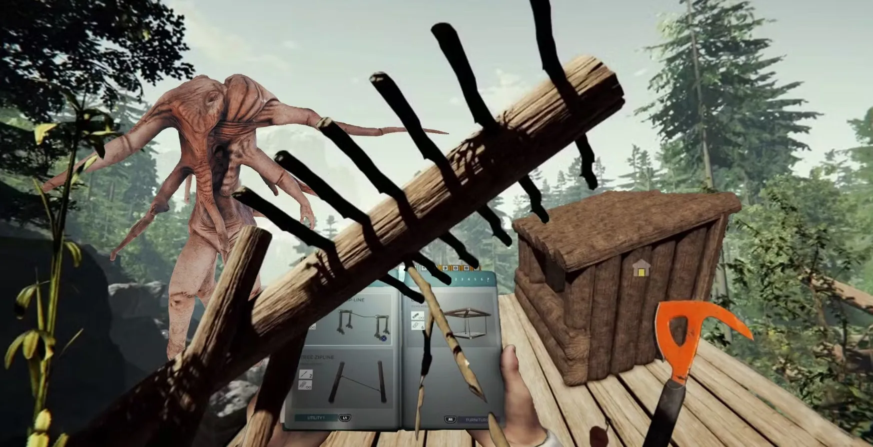 Crafting is key to both survival and combat. Your starting axe is useful, but you’ll need stronger weapons to deal with tougher enemies.